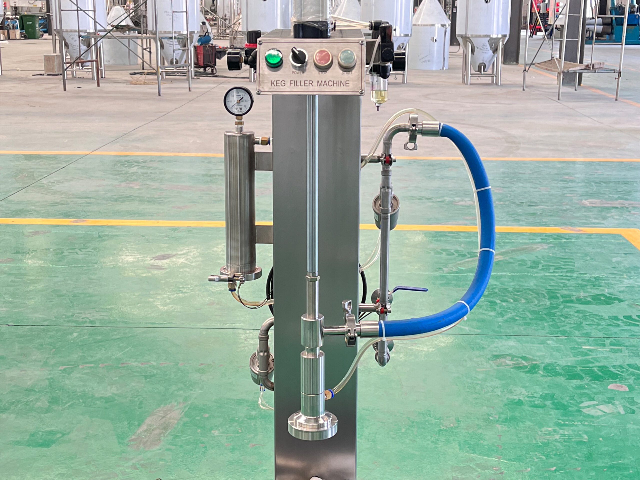 The machine is thoroughly tested for filling accuracy, pressure control, and operational stability to ensure consistent performance during keg filling.