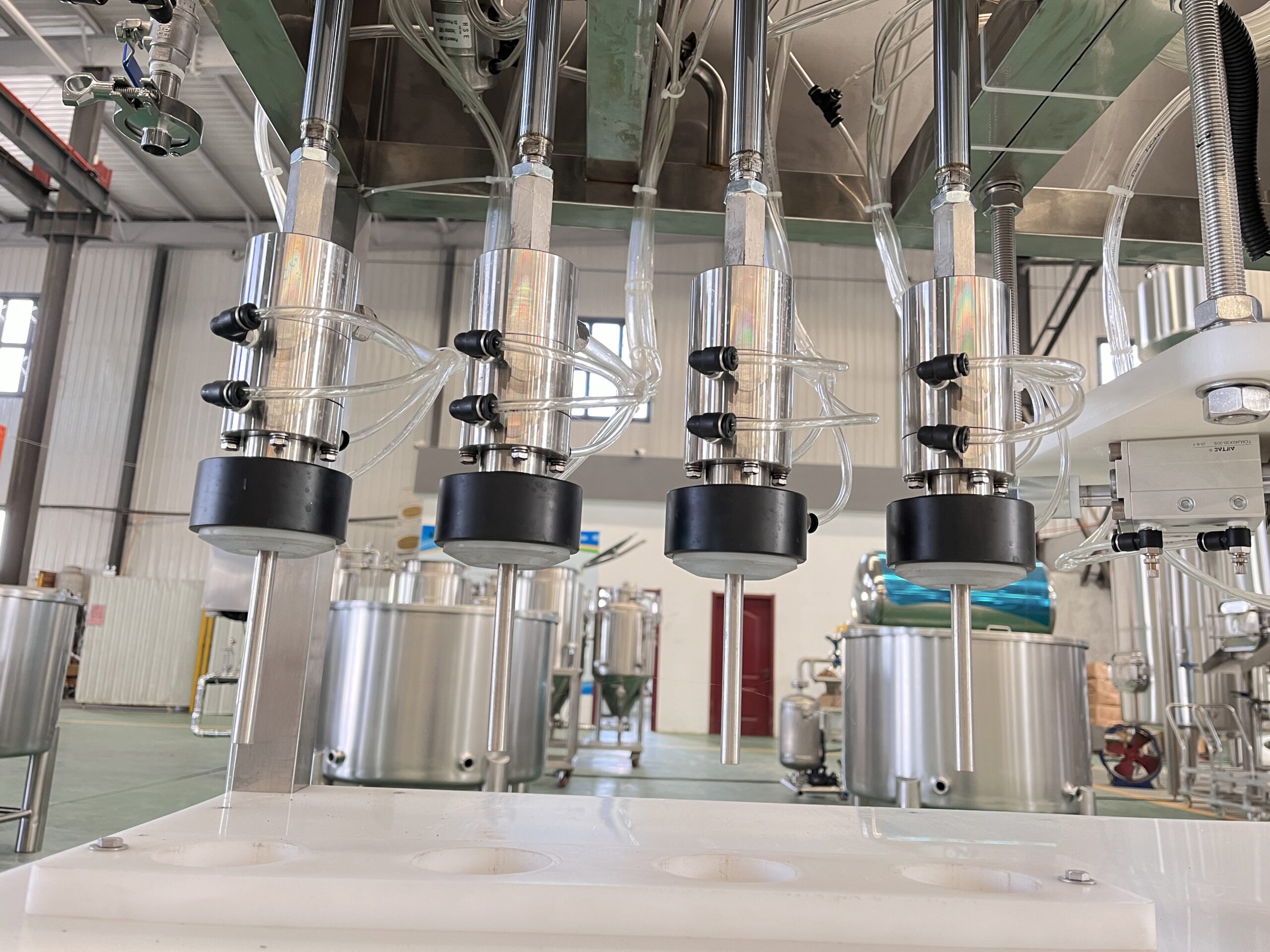 Key components are manufactured using high-quality stainless steel and precise machining processes to ensure durability, hygiene, and stable filling performance.