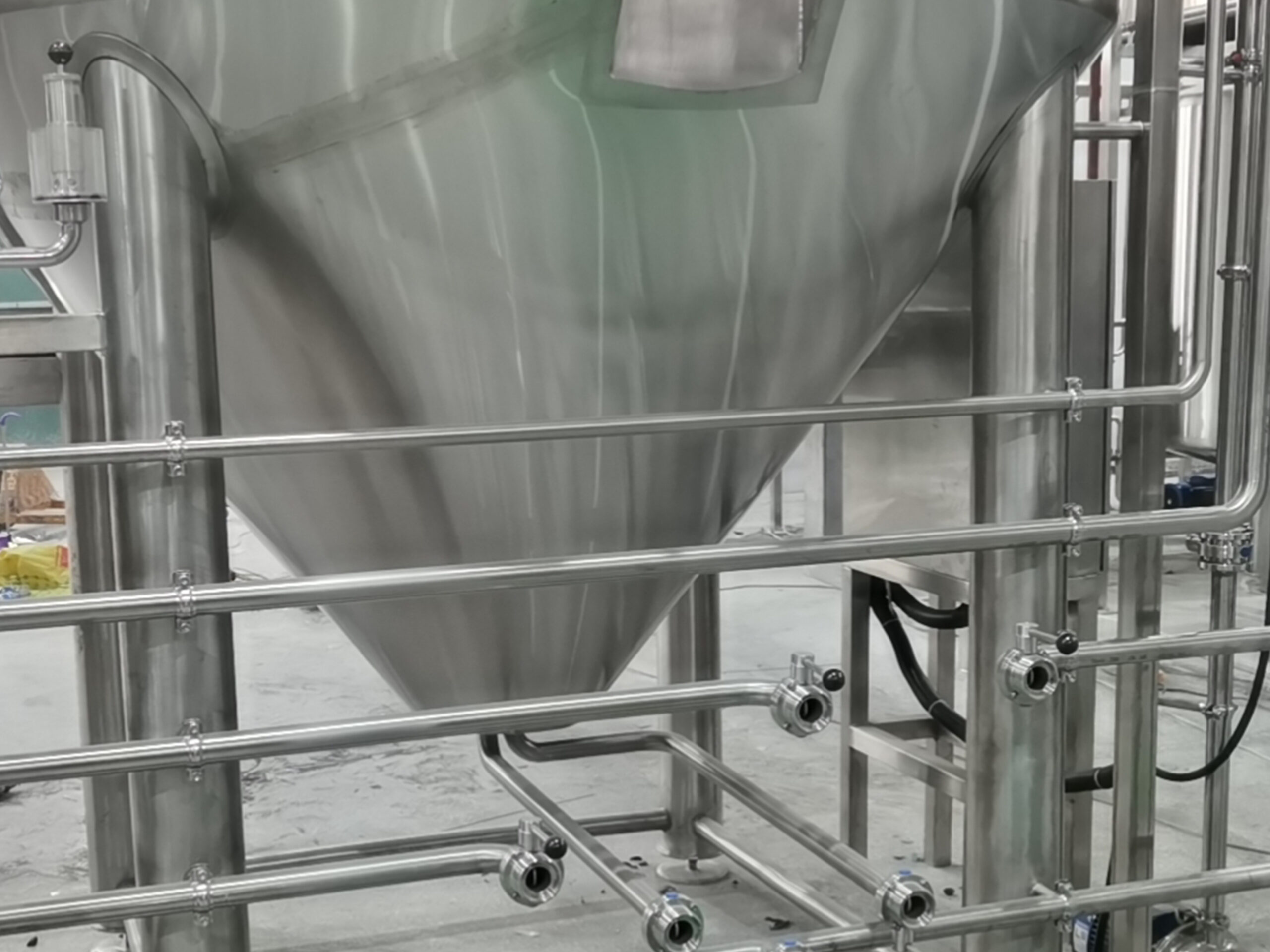 | Process Connections | Inlet / outlet, racking arm, drain, sample valve, PRV, pressure gauge, CO₂ / CIP / vacuum ports with sanitary tri-clamp fittings |